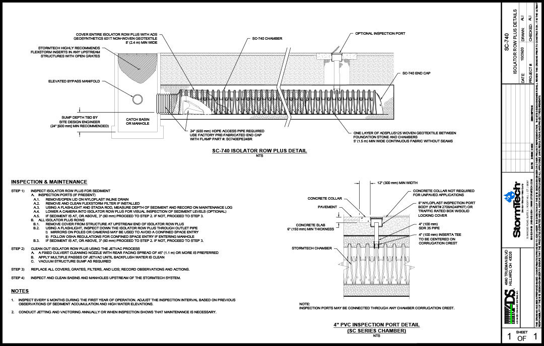 ADS “Terms and Conditions of Sale” are available on the ADS website, www.ads-pipe.com. Advanced Drainage Systems, the ADS logo, and the green stripe are registered trademarks of Advanced Drainage Systems, Inc. StormTech® and the Isolator® Row are registered trademarks of StormTech, Inc.