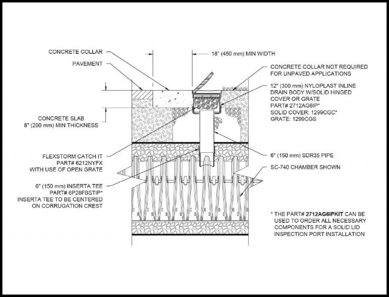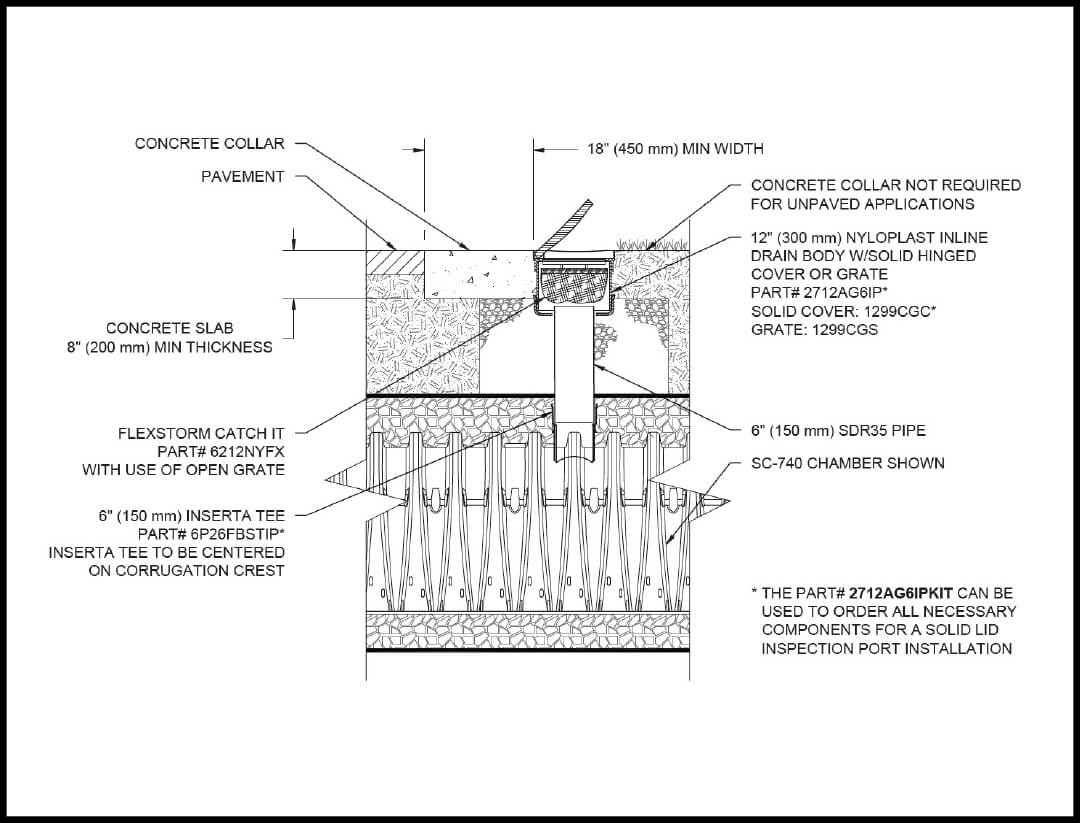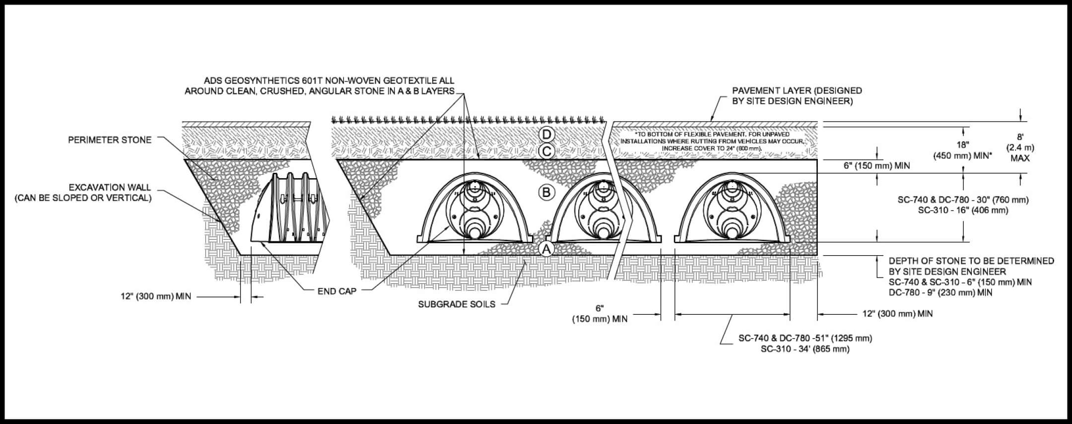 Minimum 6″ (150 mm) cover stone on top of chamber.